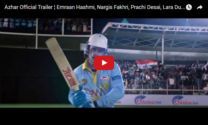 Azhar Official Trailer Released- Here is the Official trailer of Most Awaited film. The Azhar official trailer is the most awaited sports biopics in 2016 is here. Emraan Hashmi‘s titular portrayal of controversial and popular Indian cricketer Mohammad Azharuddin looks rather promising in the new trailer!’Azhar’ also stars Gautam Gulati, Prachi Desai, Nargis Fakhri and Lara Dutta. The flick is slated to release on May 13, this year.